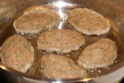 Можно просто помочить руки водой, что тоже поможет при лепке. Берем немного фарша и формируем котлету, затем отправляем на сковородку. Процесс жарки очень просто. Смазываем сковороду маслом, разогреваем ее, выкладываем котлеты, обжариваем примерно по минут с каждой стороны. Если вы хотите добиться результата по сочнее, то стоит накрыть сковороду крышкой, если же. Вы любите котлеты с поджаристой корочкой, жарьте на открытой сковороде. По готовности, котлеты снимаются с огня и выкладываются на тарелку. При желании можно украсить блюдо картошечкой, огурчиками и помидорами подойдут как свежие, так и соленые овощи, свежей зеленью. Приятного аппетита.
