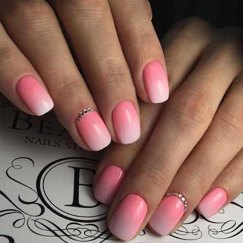 Модный градиент может быть выполнен в одном из двух вариантов в виде плавного перехода от одного цвета к другому на каждом из ноготков, или же в виде легкого деграде цвета от одного ногтя к другому. Как и в других сегментах ногтевой моды, тут особым спросом пользуются нюдовые цвета. Нежный маникюр омбре в оттенках розового и фиалкового. Самыми актуальными будут сочетания приятной пастели с насыщенными ягодными оттенками и градиент в пределах одной цветовой гаммы от сизосерого к фиалковому или от кораллового к оранжевокварцевому. Также пользуется популярностью необычный линейный градиент теперь цвета можно не смешивать при помощи губки, а наносить идеально ровными полосами, используя несколько оттенков лака и отрезки скотча. Остромодный градиент, выполненный разными оттенками одного цвета в мир ногтевой моды принесли южно корейские дизайнеры. Для создания такого маникюра обычно применяется голографическая фольга, создающая эффект разбитых кусочков стекла или зеркала, собранных на ногтевой пластине. В тренде года в цвете серебристый металлик, а также молочного, персикового и белого цветов. Самые яркие и смелые девушки могут примерить этот тренд в насыщенном оттенке электрик. Битое стекло с использованием бесцветной и бутылочной фольги. В году в модные ногтевые тренды ворвались мягкие оттенки пастели. Темные лаки, неоновые оттенки и насыщенные ягодные цвета отодвинулись в сторону, уступая место нежному оттенку фиалки, лавандовому, кварцевому, прозрачно розовому. В моде белый, цвет топленого молока и неяркий кофейный. Данный тренд с удовольствием поддержали и покрыв ноготки моделей нюдовым лаком, максимально приближенным к цвету кожи.